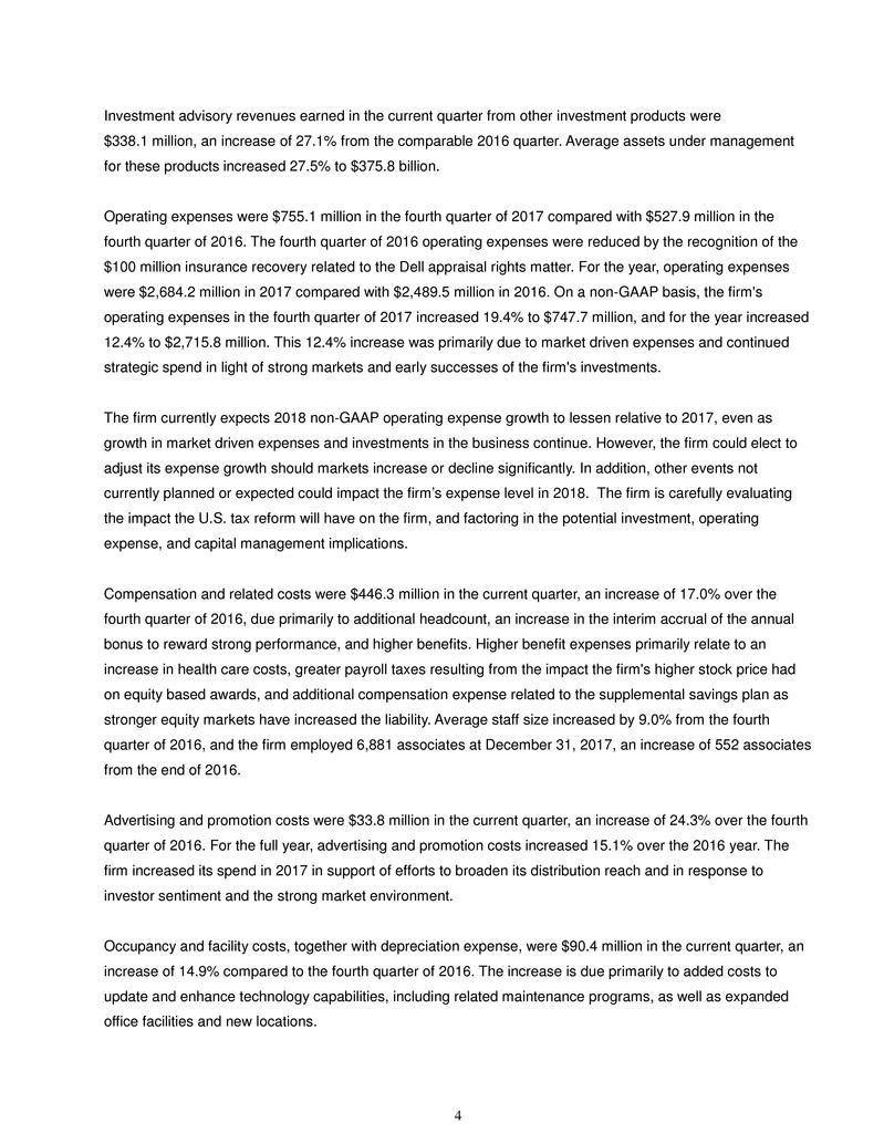 December 31, 2017. The firm's net cash inflows were $3.7 billion in the fourth quarter of 2017, inclusive of