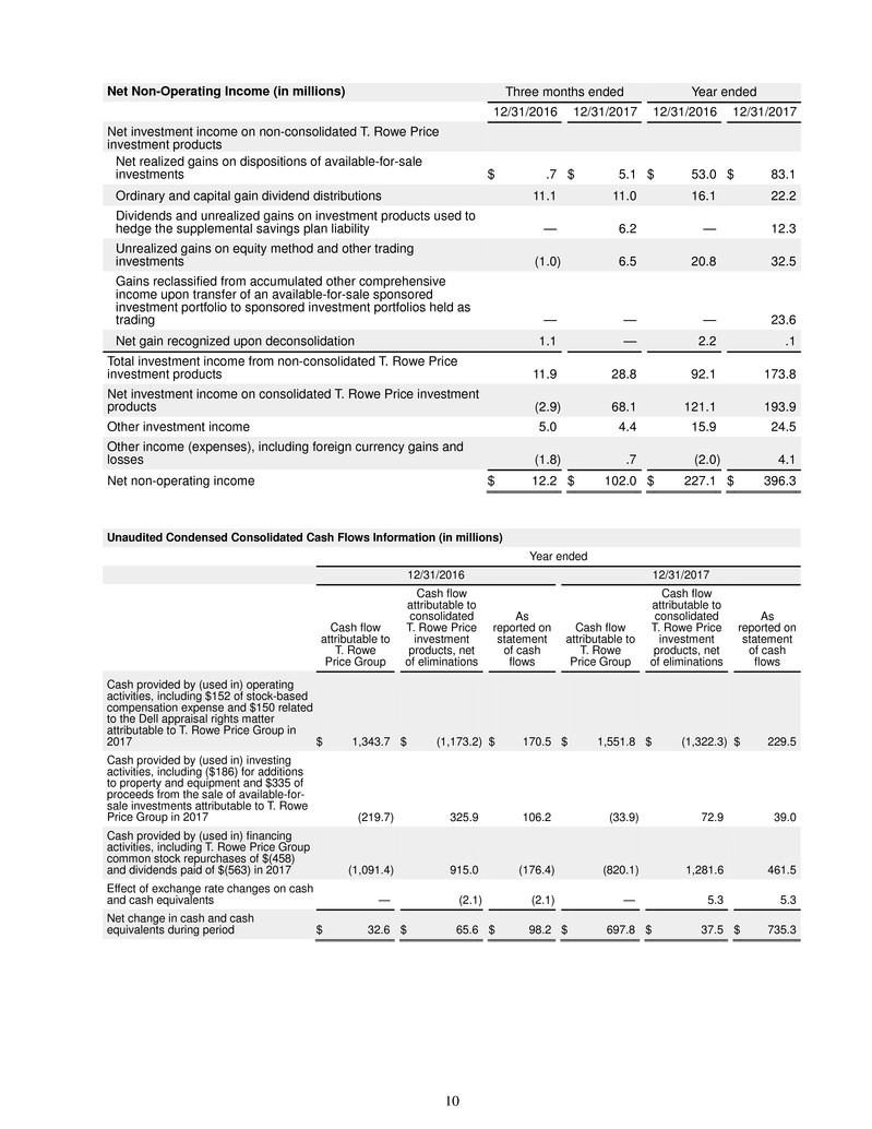 GAAP consolidated statements of income. Management believes the consolidated T. Rowe Price investment products may