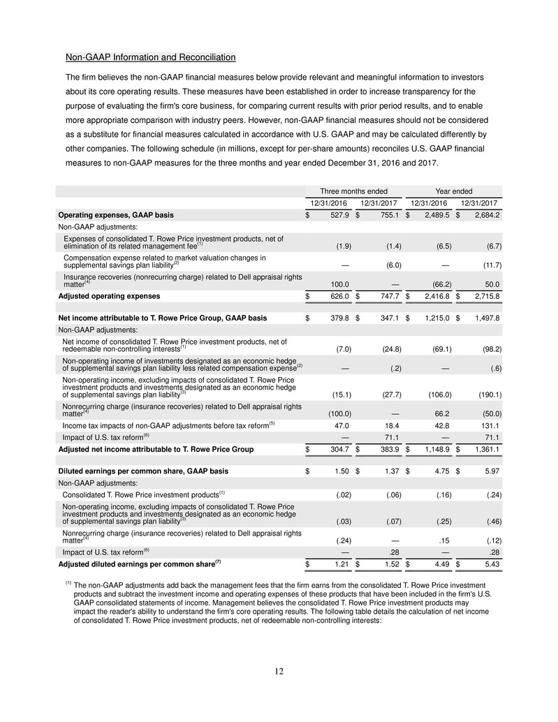 and non-recurring insurance recoveries in arriving at adjusted operating expenses and net income attributable to T. Rowe Price
