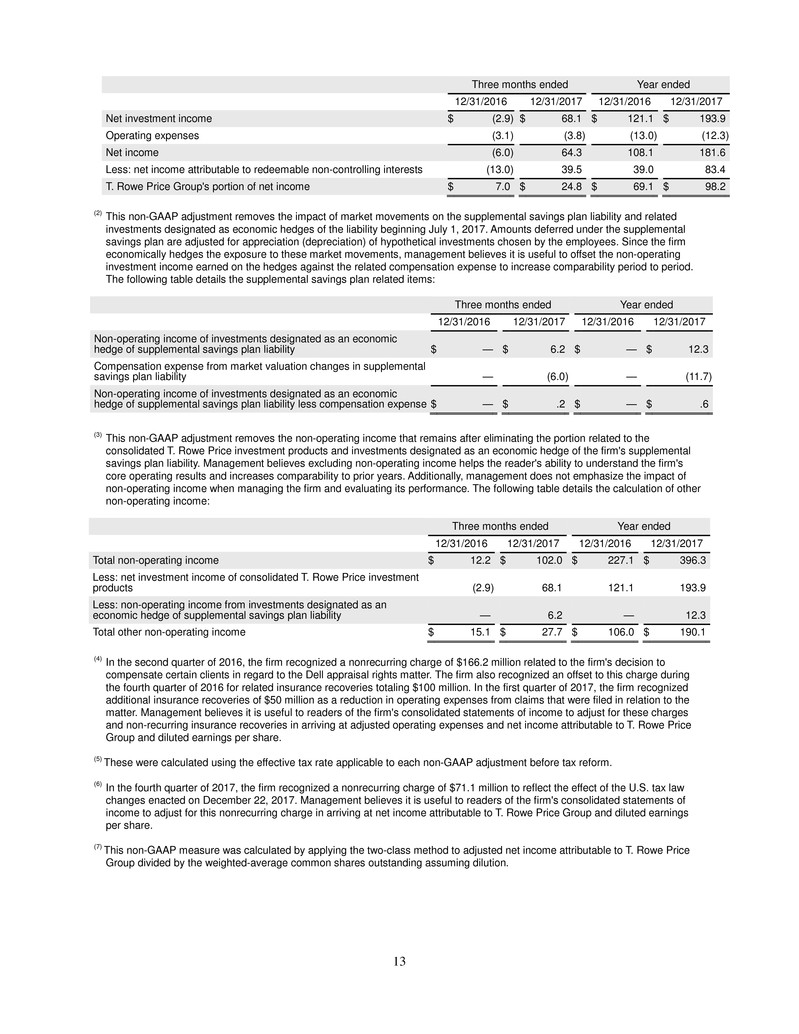 (1) The non-GAAP adjustments add back the management fees that the firm earns from the consolidated T. Rowe Price investment