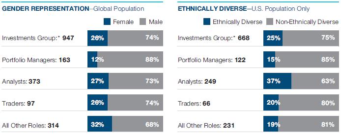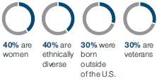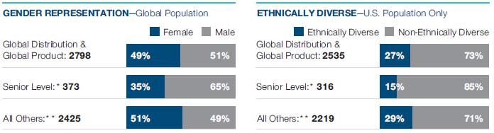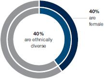 | of our independent directors were ethnically diverse or women | of senior-level hires were ethnically diverse or women(1) | of our associates in our global workforce were women | of our U.S. associates were ethnically diverse |